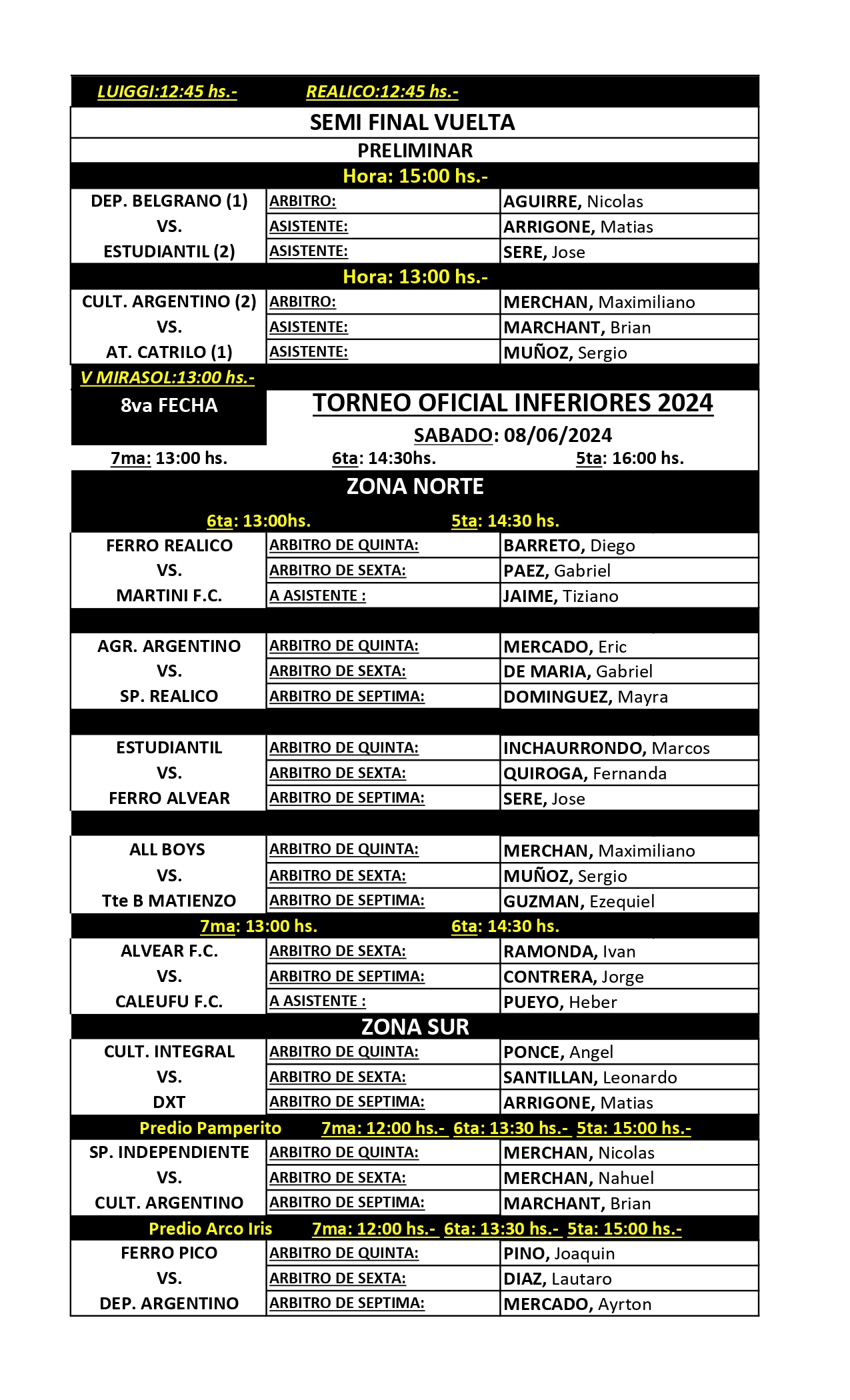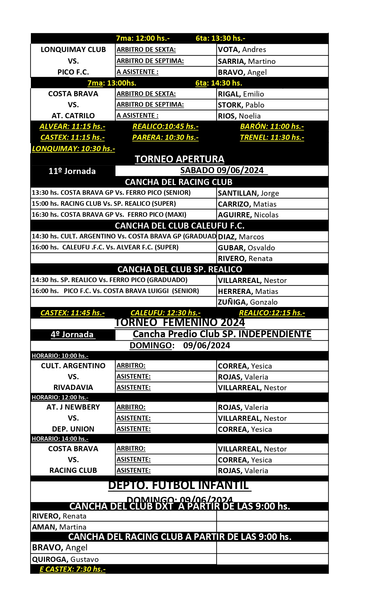 DESIGNACIONES ARBITRALES PARA EL FIN DE SEMANA