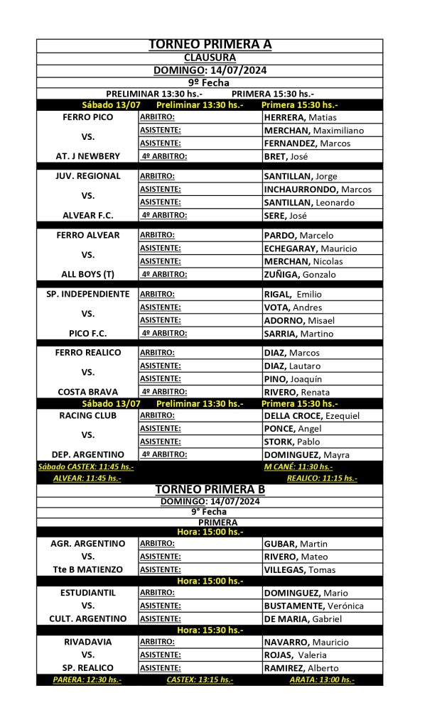 El Colegio de Árbitros de la Liga Pampeana informó cuáles serán las cuaternas arbitrales para este fin de semana en el que solo habrá actividad en Primera División y Sub-20 de «A» y «B», porque las Inferiores y el Fútbol Femenino entraron en receso invernal.