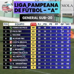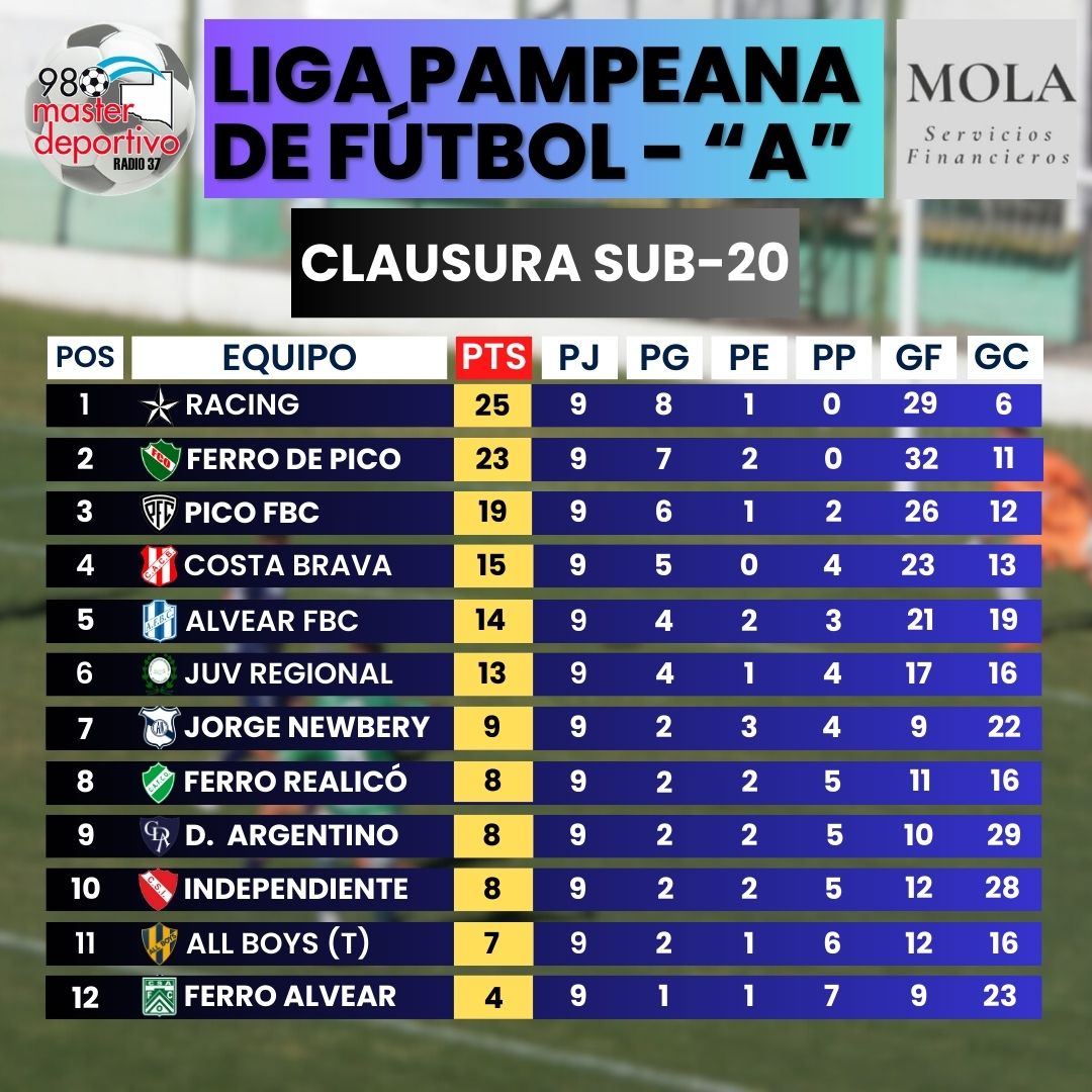 Concluyó la novena fecha del Torneo Clausura de la categoría Preliminar de la «A», en la que Pico FBC empató 1-1 en el clásico y se alejó en la punta, que ahora posee en soledad Racing de Castex con 25 puntos, 2 más que Ferro de Pico, que empató con Newbery en el «Coloso», el sábado.