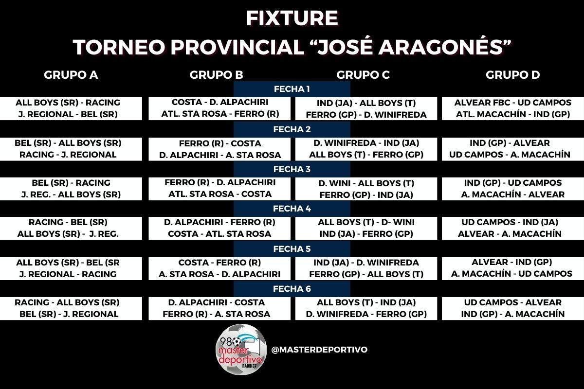 Con este panorama, la primera fecha del Torneo Provincial, programada para el domingo 25 de agosto quedó de la siguiente forma: