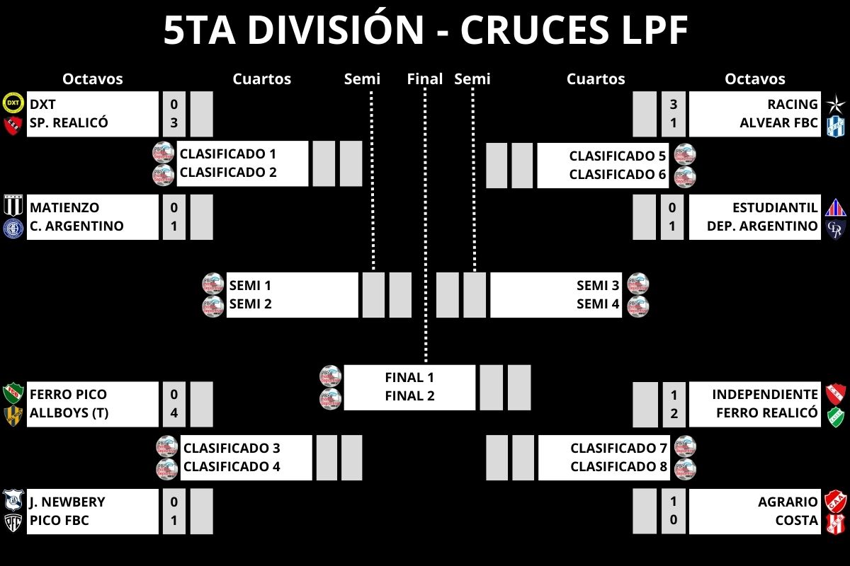 Este sábado 5 de octubre se jugarán los 22 partidos restantes de los Octavos de Final del Torneo Oficial de Divisiones Inferiores de la Liga Pampeana de Fútbol.