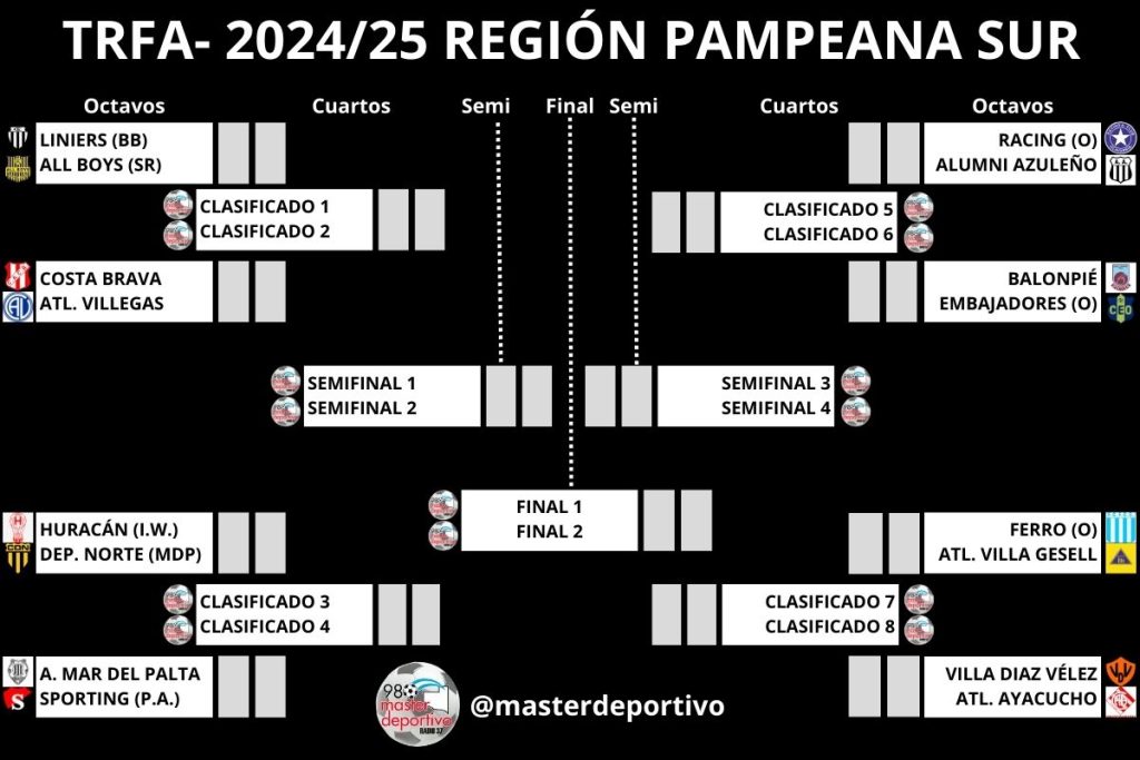 - Atl. Villa Gesell (1° en la escala por cociente) y Atlético Villegas (4°) no tienen «ventajas» de localías en el primer cruce.