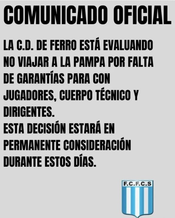 COMUNICADO DE FERRO DE OLAVARRÍA