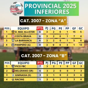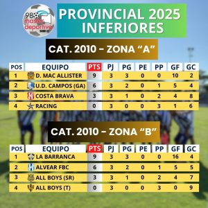 A falta de un partido que defina las posiciones en la Zona «A» de la categoría 2009, los equipos en las otras dos categorías: 2007 y 2010 ya conocen a sus rivales para los cruces de Cuartos de Final: