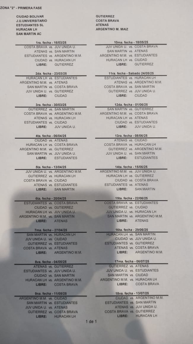 1ra. fecha – 16/03/25